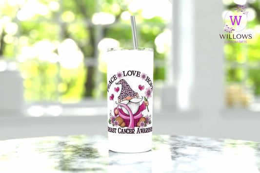 Breast Cancer - Peace & Love Gnome